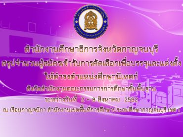 สำนักงานศึกษาธิการจังหวัดกาญจนบุรี รับการ […]