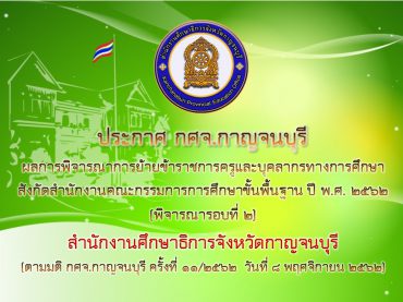 ตามมติ กศจ.กาญจนบุรี ครั้งที่ 11/2562 เมื่อวันที่ 8 พฤศ […]