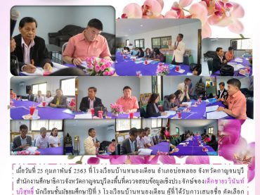 สำนักงานศึกษาธิการจังหวัดกาญจนบุรีลงพื้นที่ตรวจสอบข้อมูลเชิงประจักษ์ของเด็กชายรวินันท์ บริสุทธิ์ นักเรียนชั้นมัธยมศึกษาปีที่ 3 โรงเรียนบ้านหนองเตียน ผู้ที่ได้รับการเสนอชื่อ คัดเลือกคัดสรร ผู้รับทุนพระราชทานฯ โครงการทุนการศึกษาพระราชทานฯ ปี 2563 ภายใต้ “มูลนิธิทุนการศึกษาพระราชทาน สมเด็จพระบรมโอรสาธิราชฯ สยามมกุฎราชกุมาร (ม.ท.ศ.)” จังหวัดกาญจนบุรี