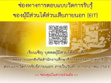 ขอเชิญผู้มีส่วนได้ส่วนเสียภายนอกที่มารับบริการตอบแบบตาม OR Code แบบวัด EIT ภายในวันที่ 31 กรกฎาคม 2563