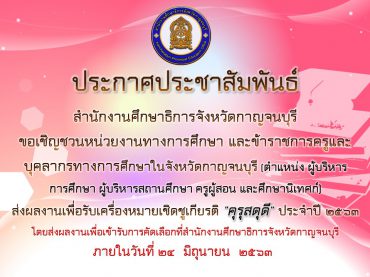 สำนักงานศึกษาธิการจังหวัดกาญจนบุรี ขอเชิญ […]