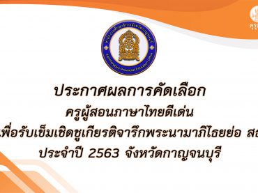 ประกาศผลการคัดเลือกครูผู้สอนภาษาไทยดีเด่น เพื่อรับเข็มเชิดชูเกียรติจารึกพระนามาภิไธยย่อ สธ ประจำปี 2563 จังหวัดกาญจนบุรี