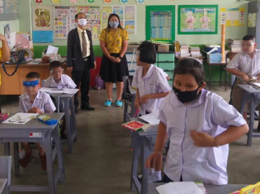 นายอนันต์ กัลปะ ศึกษาธิการจังหวัดกาญจนบุรี ออกตรวจเยี่ยมโรงเรียน วัดบ้านเก่า อ.เมือง จ.กาญจนบุรี ในโอกาสที่เปิดภาคเรียนที่ 1/2563 โดยได้ติดตามการดำเนินงานการป้องกันเกี่ยวกับโรคติดเชื้อไวรัสโคโรนา 2019 (COVID-19)