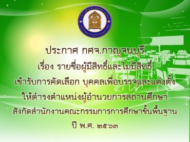 ประกาศคณะกรรมการศึกษาธิการจังหวัดกาญจนบุรี เรื่อง รายช […]