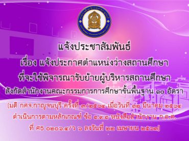 สำนักงานศึกษาธิการจังหวัดกาญจนบุรี ร่วมกับสำนักงานเขตพ […]