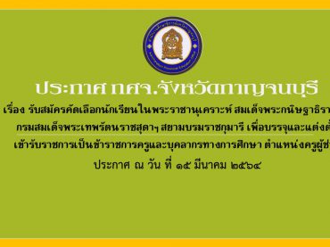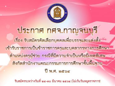 กศจ.กาญจนบุรี เรียกบรรจุครูผู้ช่วยรอบที่ 5 จำนวน 3 อัตรา (รายงานตัววันที่ 31 มีนาคม 2564)