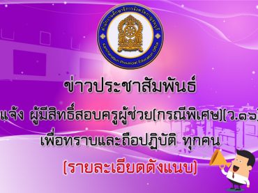 ด่วนข่าวประชาสัมพันธ์ แจ้ง ผู้มีสิทธิ์สอบครูผู้ช่วย(กรณีพิเศษ)(ว.16) เพื่อทราบและถือปฏิบัติ ทุกคน