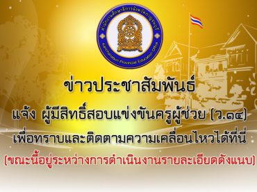 ด่วนข่าวประชาสัมพันธ์ แจ้ง ผู้มีสิทธิ์สอบแข่งขันครูผู้ช่วย (ว.14) เพื่อทราบและติดตามความเคลื่อนไหวได้ที่นี่
