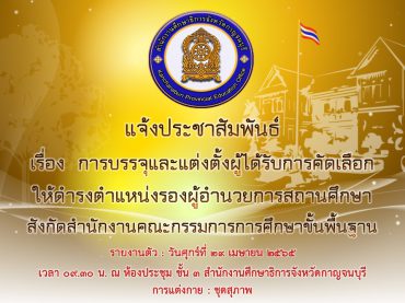 กศจ.กาญจนบุรี เรียกบรรจุรองผู้อำนวยการสถานศึกษา 2 อัตรา