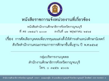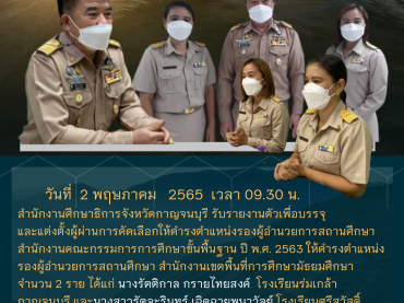ประกาศผลการคัดเลือกรางวัลของคุรุสภาประจำปี 2565 จังหวัดกาญจนบุรี