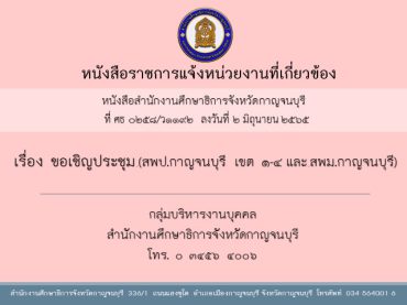 หนังสือเชิญประชุมคณะอนุกรรมการศึกษาธิการจังหวัดกาญจนบุรี ครั้งที่ 6/2565