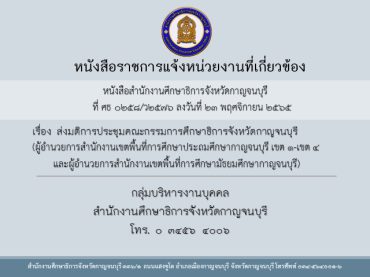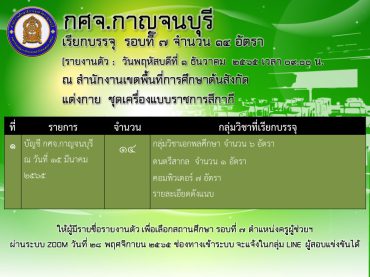 กศจ.กาญจนบุรี เรียกบรรจุครูผู้ช่วยรอบที่ 7 จำนวน 14 อัตรา (รายงานตัววันที่ 1 ธันวาคม 2565)