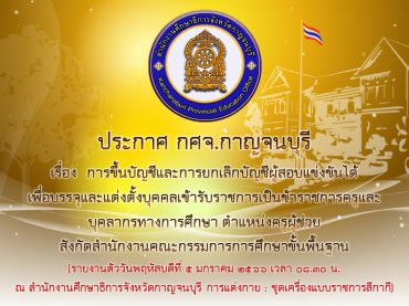 ประกาศขึ้นบัญชีและการยกเลิกบัญชีผู้สอบ กศจ.ราชบุรี &nbs […]