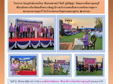 สำนักงานศึกษาธิการจังหวัดกาญจนบุรี เข้าร่วมกิจกรรม วันอนุรักษ์มรดกไทย สืบสานศาสตร์ ศิลป์ ภูมิปัญญา วัฒนธรรมถิ่นกาญจนบุรี เพื่อเฉลิมพระเกียรติสมเด็จพระกษิษฐาธิราชเจ้ากรมสมเด็จพระเทพรัตนราชสุดาฯ สยามบรมราชกุมารี ในวโรกาสทรงเจริญพระชนมายุครบ 68 พรรษา