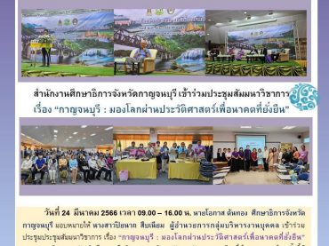 สำนักงานศึกษาธิการจังหวัดกาญจนบุรี ร่วมประชุมสัมมนาวิชาการ เรื่อง “กาญจนบุรี : มองโลกผ่านประวัติศาสตร์เพื่ออนาคตที่ยั่งยืน”