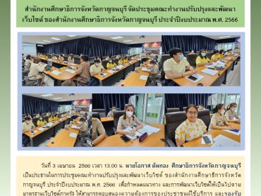สำนักงานศึกษาธิการจังหวัดกาญจนบุรี จัดประชุมคณะทำงานปรับปรุงและพัฒนาเว็บไซต์ ของสำนักงานศึกษาธิการจังหวัดกาญจนบุรี ประจำปีงบประมาณ พ.ศ. 2566
