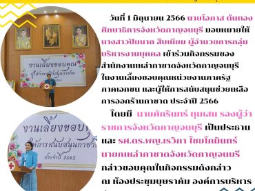 สำนักงานศึกษาธิการจังหวัดกาญจนบุรี ร่วมกิจกรรมของสำนักงานเหล่ากาชาดจังหวัดกาญจนบุรีในงานเลี้ยงขอบคุณผู้ให้การสนับสนุนงานกาชาด