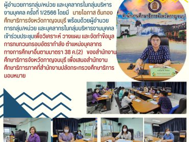 สำนักงานศึกษาธิการจังหวัดกาญจนบุรีประชุมผู้อำนวยการกลุ่ม/หน่วย และบุคลากรในกลุ่มบริหารงานบุคคล ครั้งที่ 1/2566