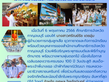 ศธจ.กาญจนบุรี ร่วมพิธีเจริญพระพุทธมนต์และพิธีทำบุญตักบาตร เนื่องในโอกาสเฉลิมฉลอง วาระครบรอบ 100 ปี วันประสูติ สมเด็จพระเจ้าพี่นางเธอ เจ้าฟ้ากัลยาณิวัฒนา กรมหลวงนราธิวาสราชนครินทร์