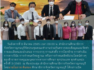 หนังสือแจ้งคำสั่งแต่งตั้งครูผู้ช่วยให้ดำรงตำแหน่งครู ในคราวการประชุม กศจ.ครั้งที่ 3/2565 จำนวน 9 ราย (แจ้ง เลขาธิการ ก.ค.ศ., สพป.กจ. เขต 1,2,4 และ สพม.กาญจนบุรี)