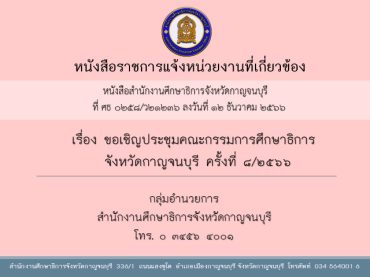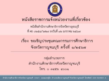 ขอเชิญประชุมคณะกรรมการศึกษาธิการจังหวัดกาญจนบุรี ครั้งที่ 1/2567