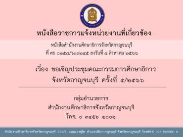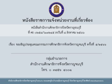 ตามที่ สำนักงานศึกษาธิการจังหวัดกาญจนบุรี ได้ประชาสัมพั […]