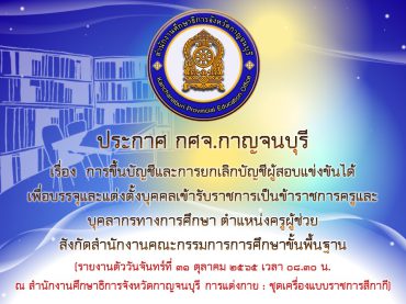 กศจ.กาญจนบุรีประกาศรายชื่อผู้มีสิทธิ์เข้ารับการประเมินค […]