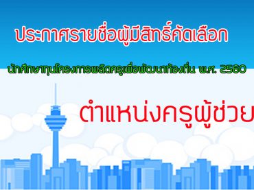 ประกาศรายชื่อผู้มีสิทธิ์คัดเลือกนักศึกษาทุนโครงการครูเพื่อพัฒนาท้องถิ่น พ.ศ.2560 ตำแหน่งครูผู้ช่วย