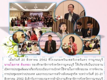 ประชุมเชิงปฏิบัติการวิเคราะห์ข้อมูลและจัดทำร่าง (ร่าง) รูปแบบ/แนวทาง การช่วยเหลือเด็กด้อยโอภาส เด็กออกกลางคัน และเด็กตกหล่นจังหวัดกาญจนบุรี เข้าสู่ระบบการศึกษาในรูปแบบที่เหมาะสม ด้วยกระบวนการ Focus Group 17 กันยายน 256217 กันยายน 2019kanpeoเอกสารประชาสัมพันธ์