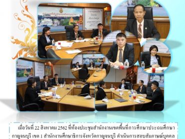 สำนักงานศึกษาธิการจังหวัดกาญจนบุรี ดำเนินการสอบสัมภาษณ์บุคคล ผู้ผ่านภาค ก. ที่สมัครเข้ารับการคัดเลือกเพื่อบรรจุและแต่งตั้งบุคคลเข้ารับราชการ เป็นข้าราชการครูและบุคลากรทางการศึกษา ตำแหน่งนักทรัพยากรบุคคลฯ ตำแหน่งนักวิชาการศึกษาฯ ตำแหน่งเจ้าพนักงานธุรการฯ และตำแหน่งนักวิชาการเงินและบัญชีฯ 17 กันยายน 256217 กันยายน 2019kanpeoเอกสารประชาสัมพันธ์