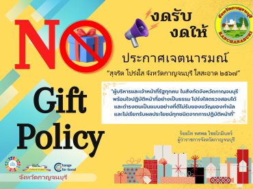 จังหวัดกาญจนบุรี ประกาศเจตนารมณ์ “สุจริต โปร่งใส จังหวัดกาญจนบุรี ใสสะอาด 2567” และ”งดรับ งดให้”ของขวัญ ของกำนัลทุกชนิดจากการปฏิบัติหน้าที่ (No Gift Policy)