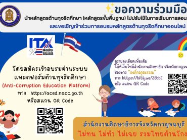 ขอความร่วมมือในการเข้าอบรมหลักสูตรต้านทุจริตศึกษาออนไลน์ ผ่านระบบแพลตฟอร์มต้านทุจริต